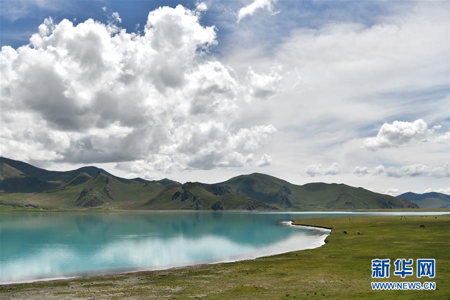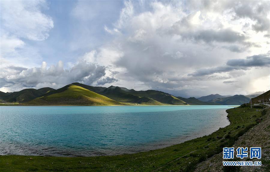 8月28日拍攝的羊卓雍錯風(fēng)光。新華社記者李鑫攝