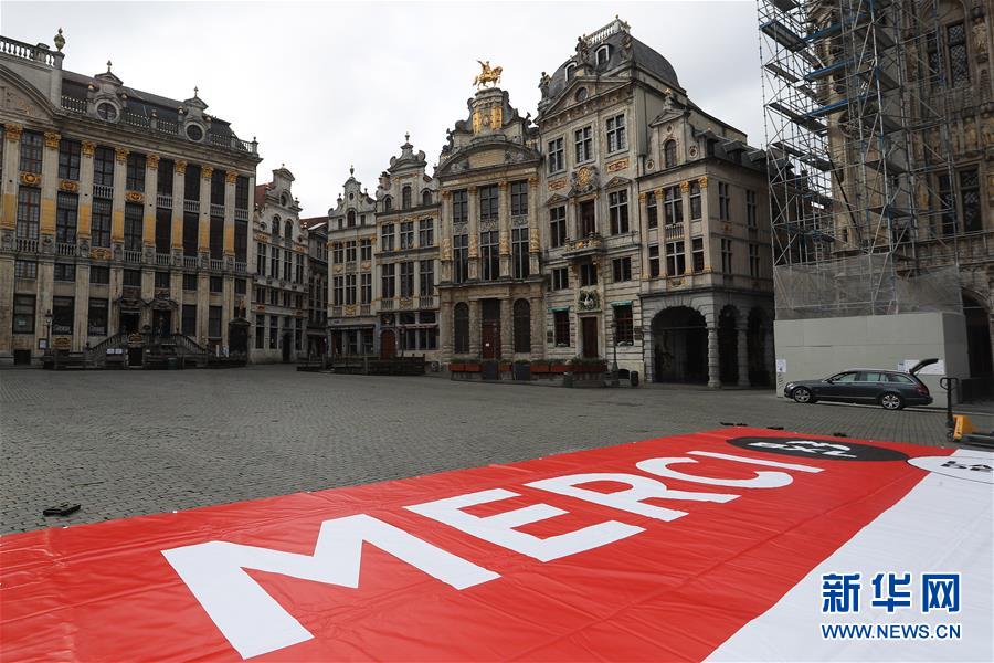 這是4月13日在比利時(shí)布魯塞爾大廣場(chǎng)拍攝的為抗擊疫情加油的巨幅海報(bào)。當(dāng)日,比利時(shí)布魯塞爾市政府工作人員在市中心的大廣場(chǎng)展開(kāi)一面巨幅海報(bào),上面用法語(yǔ)和荷蘭語(yǔ)印著“一起鼓起勇氣”“謝謝”,以感謝市民及醫(yī)療人員為抗擊疫情所做的努力。新華社記者鄭煥松攝