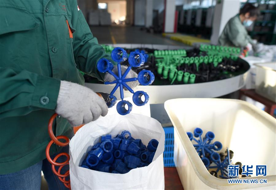 4月13日,員工在位于店口鎮(zhèn)的諸暨市風(fēng)帆管業(yè)有限公司注塑車間分揀自動(dòng)化生產(chǎn)線上的管件。新華社記者韓傳號攝