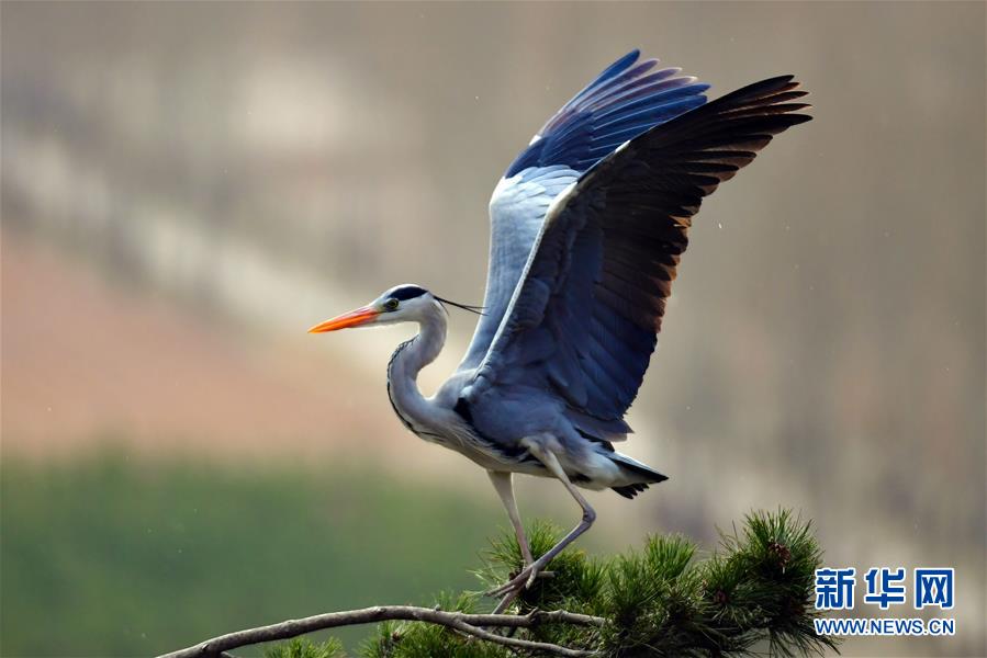 山西呂梁:蒼鷺舞林間
