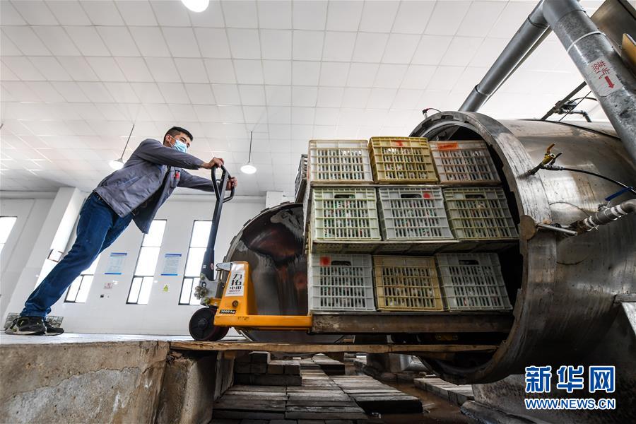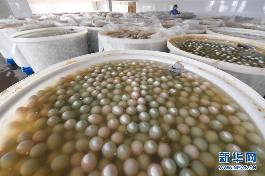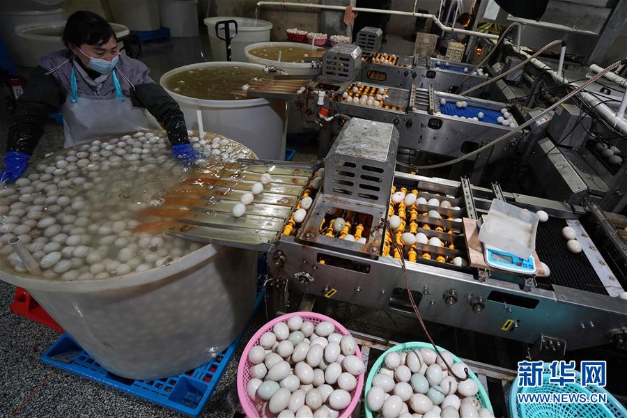 在江蘇高郵鴨集團(tuán)生產(chǎn)車間,腌制好的鴨蛋準(zhǔn)備進(jìn)行清洗包裝作業(yè)(4月15日攝)?!案哙]鴨蛋”是江蘇高郵的特色農(nóng)業(yè)名片。近年來,當(dāng)?shù)卦诹挤N繁育、生態(tài)養(yǎng)殖、產(chǎn)品加工等方面加大力度,推動高郵鴨蛋品牌化建設(shè),讓小鴨蛋成為帶動農(nóng)戶致富的大產(chǎn)業(yè)。2019年,高郵市共計生產(chǎn)熟制鴨蛋產(chǎn)品近11.2億枚,年產(chǎn)值近17.68億元。新華社記者李博攝