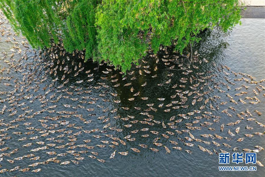 這是4月15日在高郵鴨良種繁育中心拍攝的鴨群(無人機(jī)照片)?!案哙]鴨蛋”是江蘇高郵的特色農(nóng)業(yè)名片。近年來,當(dāng)?shù)卦诹挤N繁育、生態(tài)養(yǎng)殖、產(chǎn)品加工等方面加大力度,推動高郵鴨蛋品牌化建設(shè),讓小鴨蛋成為帶動農(nóng)戶致富的大產(chǎn)業(yè)。2019年,高郵市共計生產(chǎn)熟制鴨蛋產(chǎn)品近11.2億枚,年產(chǎn)值近17.68億元。新華社記者季春鵬攝