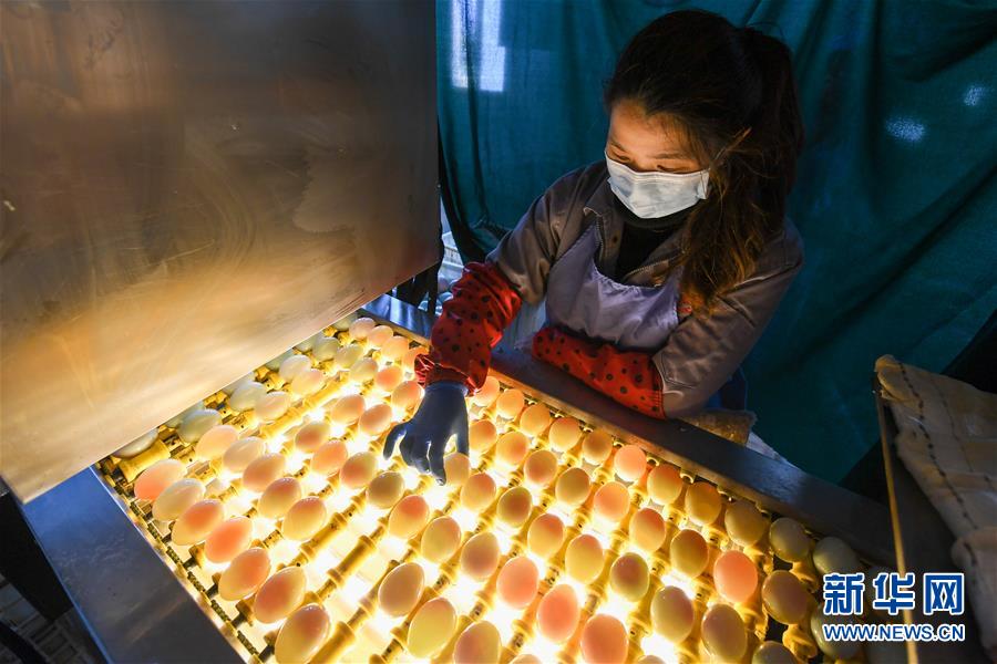 江蘇高郵鴨集團(tuán)的工作人員在生產(chǎn)線上對鴨蛋進(jìn)行光檢作業(yè)(4月15日攝)?!案哙]鴨蛋”是江蘇高郵的特色農(nóng)業(yè)名片。近年來,當(dāng)?shù)卦诹挤N繁育、生態(tài)養(yǎng)殖、產(chǎn)品加工等方面加大力度,推動高郵鴨蛋品牌化建設(shè),讓小鴨蛋成為帶動農(nóng)戶致富的大產(chǎn)業(yè)。2019年,高郵市共計生產(chǎn)熟制鴨蛋產(chǎn)品近11.2億枚,年產(chǎn)值近17.68億元。新華社記者李博攝
