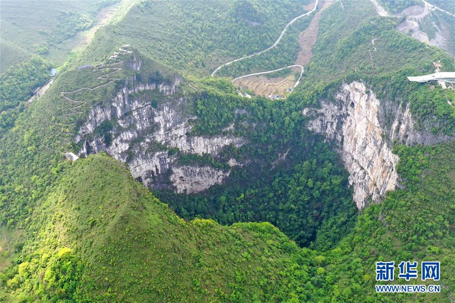 這是4月19日拍攝的中國樂業(yè)—鳳山世界地質(zhì)公園內(nèi)的大石圍天坑(無人機照片)。中國樂業(yè)—鳳山世界地質(zhì)公園位于廣西西北部,公園內(nèi)地質(zhì)遺跡包括天坑群、天窗群、鐘乳石等,具有重要的科研價值和美學(xué)觀賞價值。