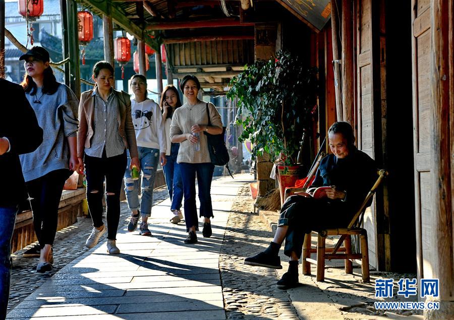 游客在武夷山下梅村游覽(11月5日攝)。福建省武夷山市下梅村是“中國(guó)歷史文化名村”,這里歷史悠久,人文薈萃,至今保存著70余幢明清時(shí)代的古民居。人工運(yùn)河穿村而過,古民居、涼亭、古街等構(gòu)成了別具特色的江南水鄉(xiāng)風(fēng)景。新華社記者馬平攝