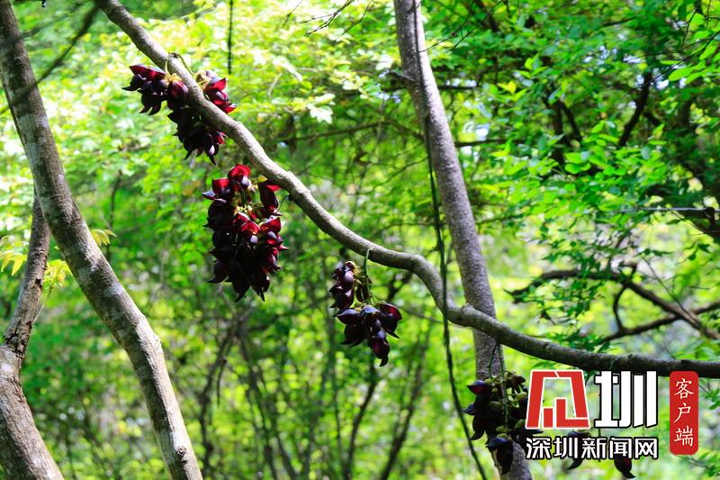 禾雀花序懸掛于悠長(zhǎng)盤(pán)曲的老莖上,吊掛成串,每串二、三十朵,串串下垂。