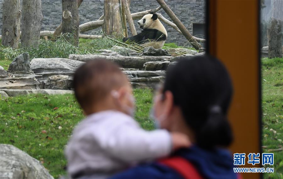 4月22日,大熊貓迎來(lái)參觀的游客。當(dāng)日,在嚴(yán)格落實(shí)疫情防控措施的前提下,武漢動(dòng)物園有序恢復(fù)開(kāi)放。新華社記者程敏攝