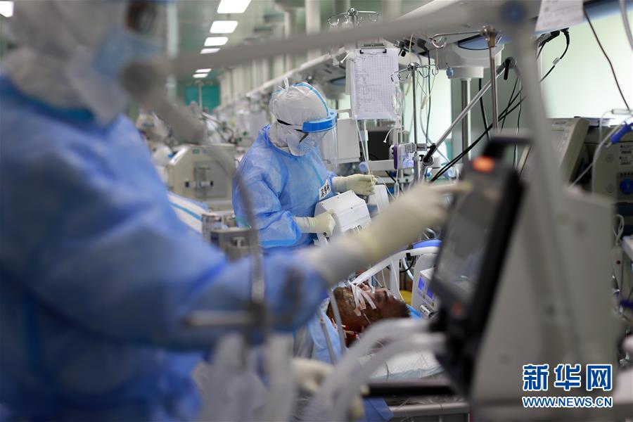 4月24日,在位于武漢的華中科技大學(xué)同濟(jì)醫(yī)學(xué)院附屬協(xié)和醫(yī)院西院,醫(yī)務(wù)人員馬夢琳(中)在護(hù)理核酸檢測結(jié)果轉(zhuǎn)陰的新冠肺炎病人。新華社記者沈伯韓攝