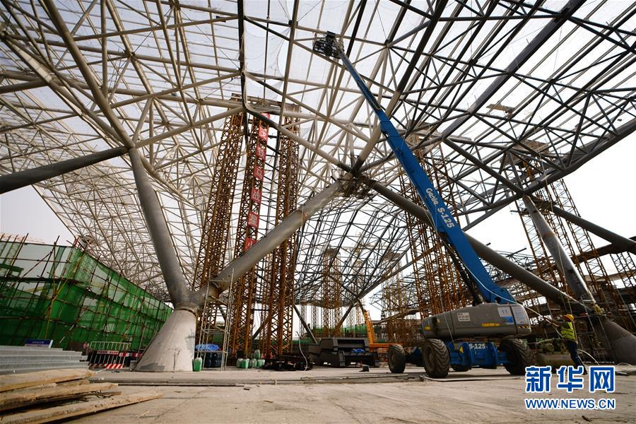 4月24日,中鐵建設(shè)集團(tuán)的工人在星火站施工。北京星火站是京沈高鐵的始發(fā)站,站房總建筑面積18.3萬平方米,將于2020年底完工。目前正在進(jìn)行混凝土主體結(jié)構(gòu)收尾工作,鋼結(jié)構(gòu)主體正在緊張施工,即將完工。新華社記者邢廣利攝