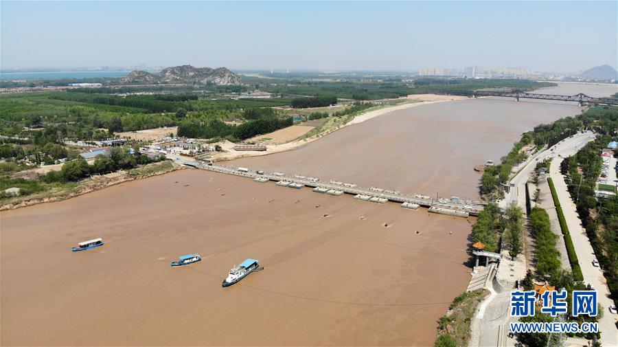 4月24日在山東濟(jì)南拍攝的黃河景色(無人機(jī)照片)。春暖花開的時節(jié),濟(jì)南黃河兩岸春風(fēng)送綠,大河、綠植與城市構(gòu)成了一幅春的畫卷。新華社記者王凱攝