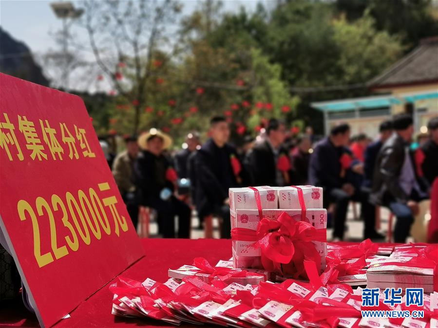 4月24日拍攝的甘肅省隴南市徽縣鐵山村公開分紅大會現(xiàn)場。新華社記者張新新攝