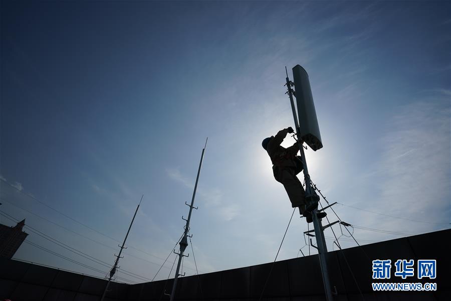 4月25日,在南京220千伏城南河變電站屋頂,工人在架設4G設備。當日,三大通信運營商的2座5G、3座4G基站建設工作在南京220千伏城南河變電站屋頂有序展開。在變電站內(nèi)建設基站可有效利用電網(wǎng)資源,縮短建設周期,節(jié)約建設成本。新華社記者季春鵬攝