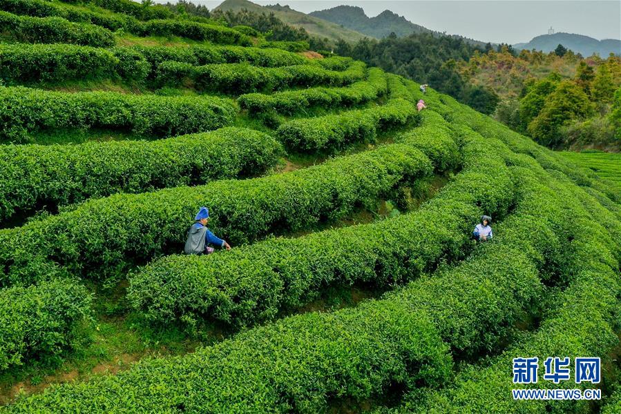 這是4月25日拍攝的“扶貧茶園”(無人機(jī)照片)。谷雨過后,在貴州省黔東南苗族侗族自治州丹寨縣“扶貧茶園”,茶農(nóng)搶抓農(nóng)時趕制春茶。丹寨縣創(chuàng)新產(chǎn)業(yè)扶貧模式,鼓勵社會公眾線上認(rèn)領(lǐng)茶園,再由茶園聘請當(dāng)?shù)刎毨魟?wù)工,為貧困戶創(chuàng)造茶園管理、采茶、制茶等就業(yè)機(jī)會,幫助貧困戶增收。今年以來,“扶貧茶園”已接受線上預(yù)訂600余畝,給當(dāng)?shù)?00余名村民提供了就業(yè)機(jī)會。新華社記者歐東衢攝