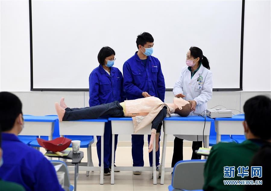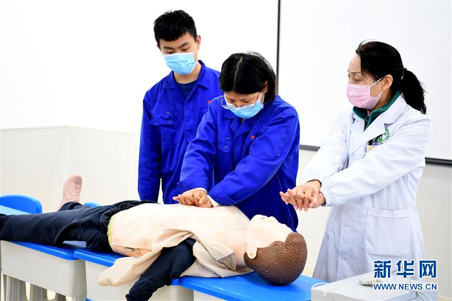 4月27日,常青街道竹西社區(qū)邀請醫(yī)護人員(右一)為轄區(qū)企業(yè)工人講解急救知識。當(dāng)日,安徽省合肥市包河區(qū)常青街道開展健康講座、職業(yè)病防護宣傳等系列活動,提高勞動者的自我防護意識和能力,迎接“五一”國際勞動節(jié)。新華社記者劉軍喜攝