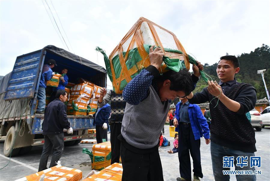 3月25日,在桂黔烏英苗寨,村民在搬運(yùn)螺苗,準(zhǔn)備投放。新華社記者黃孝邦攝