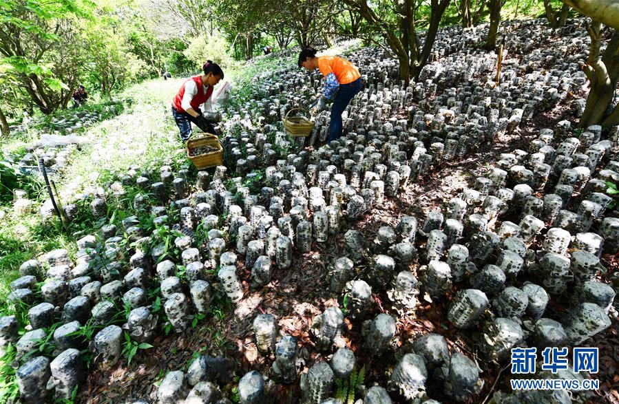 村民在劍河縣岑松鎮(zhèn)巫亮村林下仿野生食用菌基地采摘木耳(4月27日攝)。近年來,貴州省黔東南苗族侗族自治州劍河縣充分利用林下土地培育木耳,既不耽誤林木生長,又發(fā)展了食用菌產(chǎn)業(yè)。目前,該縣采取“龍頭企業(yè)+合作社+貧困戶”的合作模式,大力推廣林下木耳種植,帶動農(nóng)民增收。新華社記者楊文斌攝