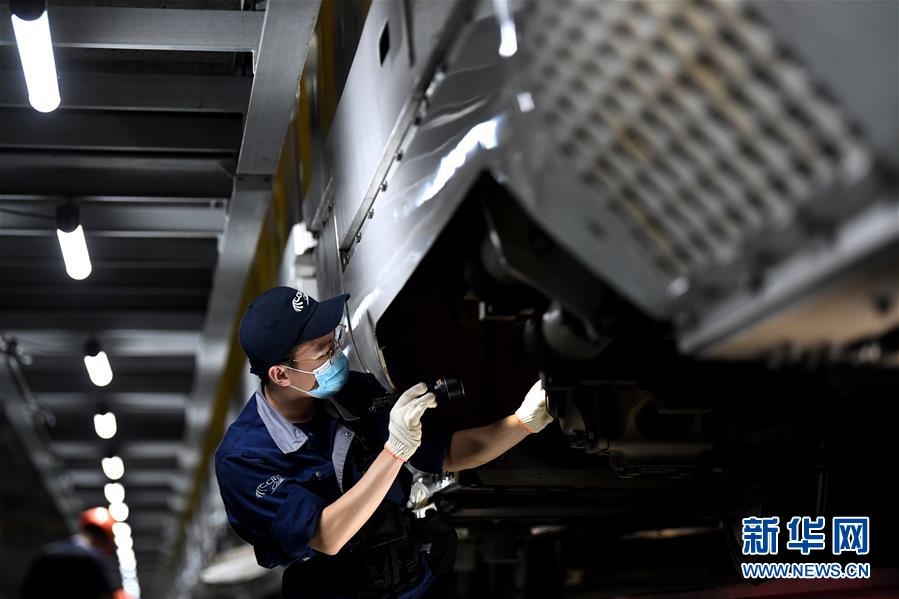 4月29日夜,合肥南動車運(yùn)用所的工作人員對動車組進(jìn)行檢修。每當(dāng)夜深人靜的時候,合肥南動車運(yùn)用所卻燈火通明,“動車安全守護(hù)者”們堅守崗位,對動車組進(jìn)行全面細(xì)致檢修。新華社記者 劉軍喜 攝