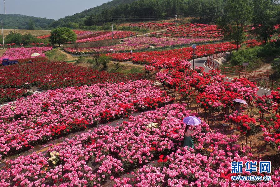 5月2日,游人在湖北省荊門市圣境花谷游玩(無人機(jī)照片)?!拔逡弧奔偃掌陂g,人們以多種方式放松心情、享受假日。新華社發(fā)(彭琦攝)