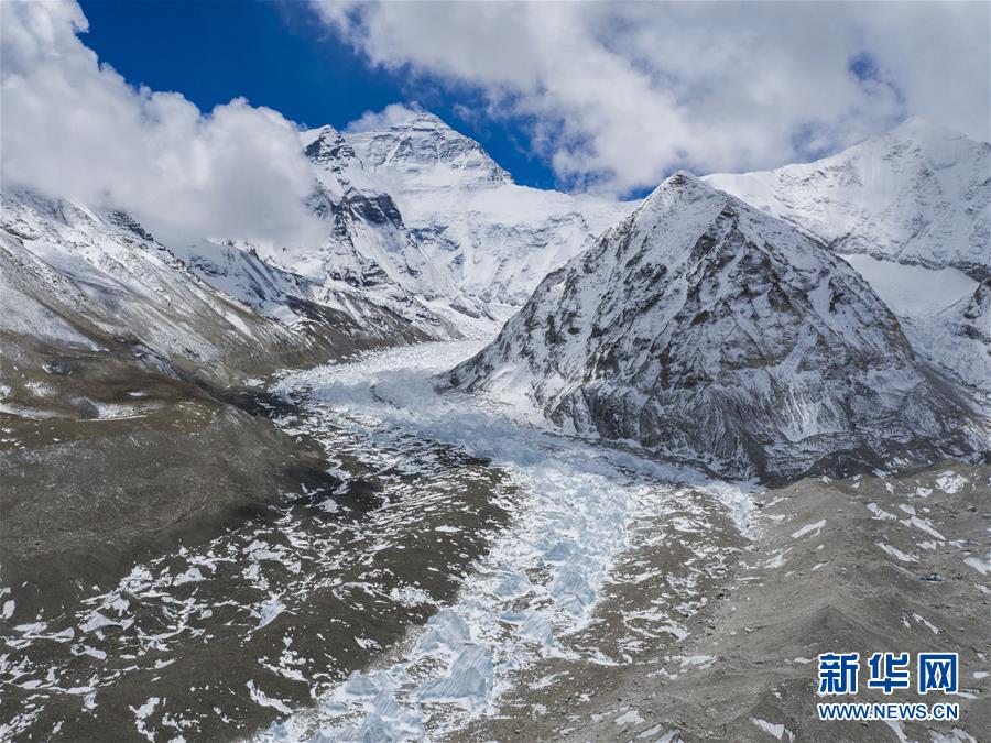 位于珠穆朗瑪峰腳下海拔5400米左右的中絨布冰川(4月30日攝,無人機(jī)照片)。位于珠穆朗瑪峰腳下海拔5400米左右的中絨布冰川,巍峨壯觀,冰塔林托起世界最高峰,讓人嘆為觀止。新華社記者普布扎西攝