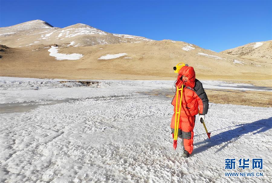 國測一大隊隊員霍申申在西藏定日縣扎西宗鄉(xiāng)境內(nèi)進行水準測量(4月4日攝)。水準測量是一種利用提供水平視線的儀器(如水準儀、水準標尺),測定地面不同點之間的高差,并以此推算高度的一種方法,是經(jīng)典大地測量的重要技術(shù)之一。在目前正在進行的2020珠峰高程測量中,部分國測一大隊隊員承擔(dān)了水準測量的任務(wù)。新華社發(fā)(楊明攝)