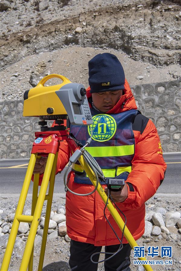 國(guó)測(cè)一大隊(duì)隊(duì)員金良在操作水準(zhǔn)儀(4月18日攝)。水準(zhǔn)測(cè)量是一種利用提供水平視線的儀器(如水準(zhǔn)儀、水準(zhǔn)標(biāo)尺),測(cè)定地面不同點(diǎn)之間的高差,并以此推算高度的一種方法,是經(jīng)典大地測(cè)量的重要技術(shù)之一。在目前正在進(jìn)行的2020珠峰高程測(cè)量中,部分國(guó)測(cè)一大隊(duì)隊(duì)員承擔(dān)了水準(zhǔn)測(cè)量的任務(wù)。新華社記者晉美多吉攝
