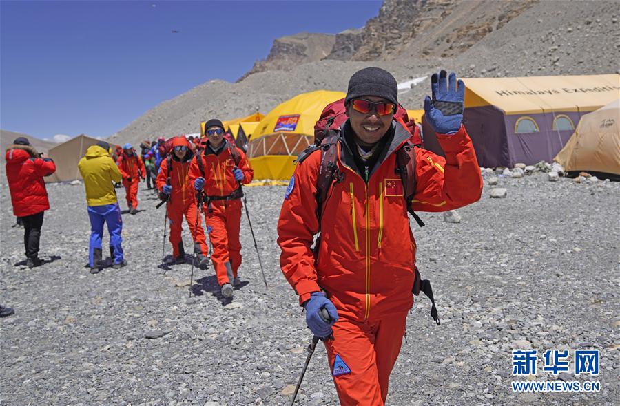 5月6日,登山隊(duì)員們在珠峰大本營舉行出發(fā)儀式。
