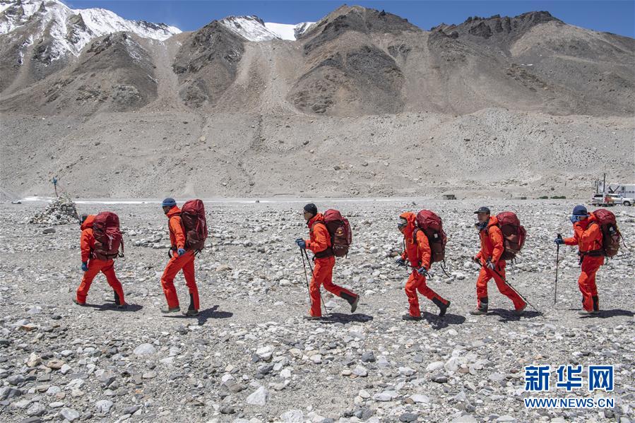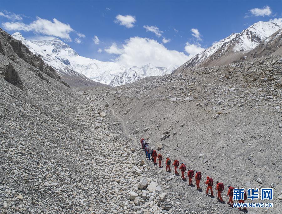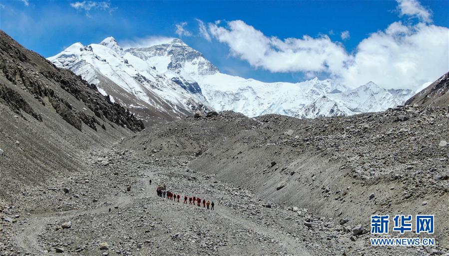 5月6日,登山隊(duì)員們向更高海拔進(jìn)發(fā)。新華社記者普布扎西攝