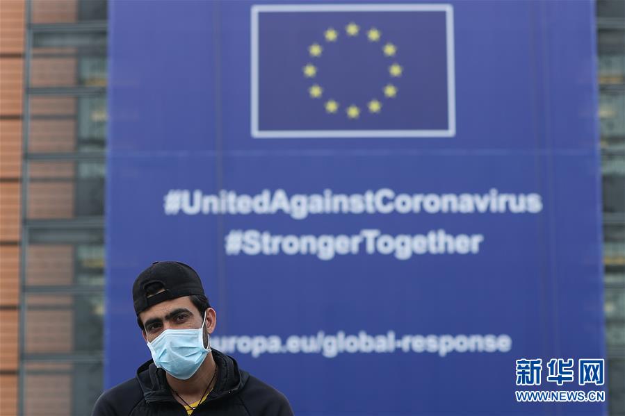 歐盟委員會5月6日預測,受新冠疫情影響,2020年歐洲經(jīng)濟將出現(xiàn)“歷史性衰退”,歐盟經(jīng)濟將萎縮7.5%,歐元區(qū)經(jīng)濟將萎縮7.75%。這是5月4日在比利時布魯塞爾的歐盟委員會總部大廈前拍攝的一名戴口罩的男子。新華社記者鄭煥松攝