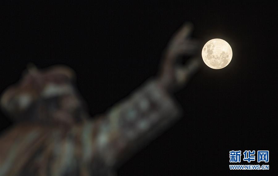 這是5月7日晚在澳大利亞悉尼拍攝的“超級月亮”?!俺壴铝痢敝傅氖窃铝廖挥诮攸c時剛好出現(xiàn)滿月。新華社記者白雪飛攝