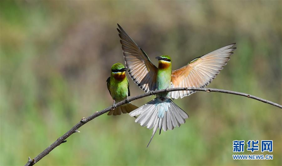 近日,百余只栗喉蜂虎和少量藍(lán)喉蜂虎來(lái)到海南省??谑形骱0抖鄠€(gè)地點(diǎn)棲息繁衍,為椰城增添一抹亮色。據(jù)了解,蜂虎每年春夏都會(huì)回到固定地點(diǎn)繁殖,由于習(xí)性特殊,蜂虎需要在新形成的沙質(zhì)土坡上做窩。為此,??谑邢嚓P(guān)部門(mén)每年在蜂虎到來(lái)之前,會(huì)在蜂虎棲息地整坡清樹(shù),為蜂虎營(yíng)造良好的棲息環(huán)境。