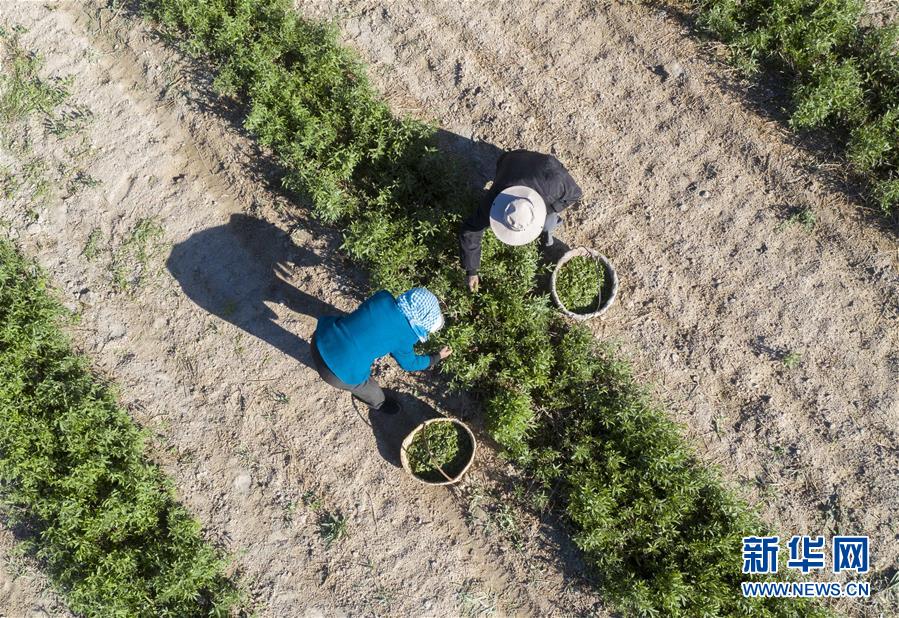 5月11日,采茶工在寧夏百瑞源賀蘭山基地采摘枸杞芽茶(無人機照片)。當(dāng)日,寧夏百瑞源賀蘭山基地枸杞芽茶全面進入采摘季。據(jù)了解,該基地茶園面積300余畝,助力附近200多名農(nóng)民就業(yè)增收。新華社記者楊植森攝