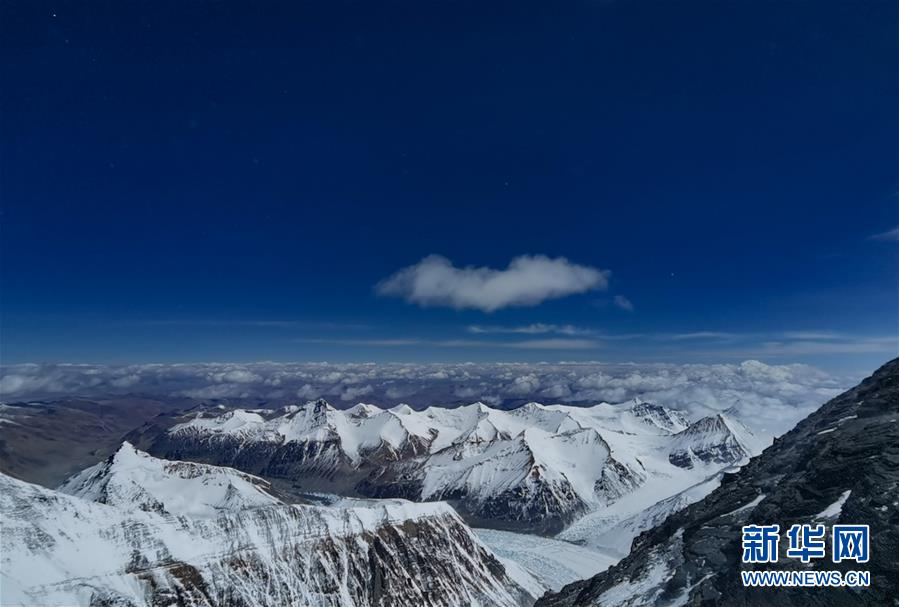 從珠峰海拔7028米以上拍攝的壯美景色(5月11日攝)。從珠峰海拔7028米的一號(hào)營地繼續(xù)向上攀登,沿途景色十分壯美。新華社特約記者拉巴攝