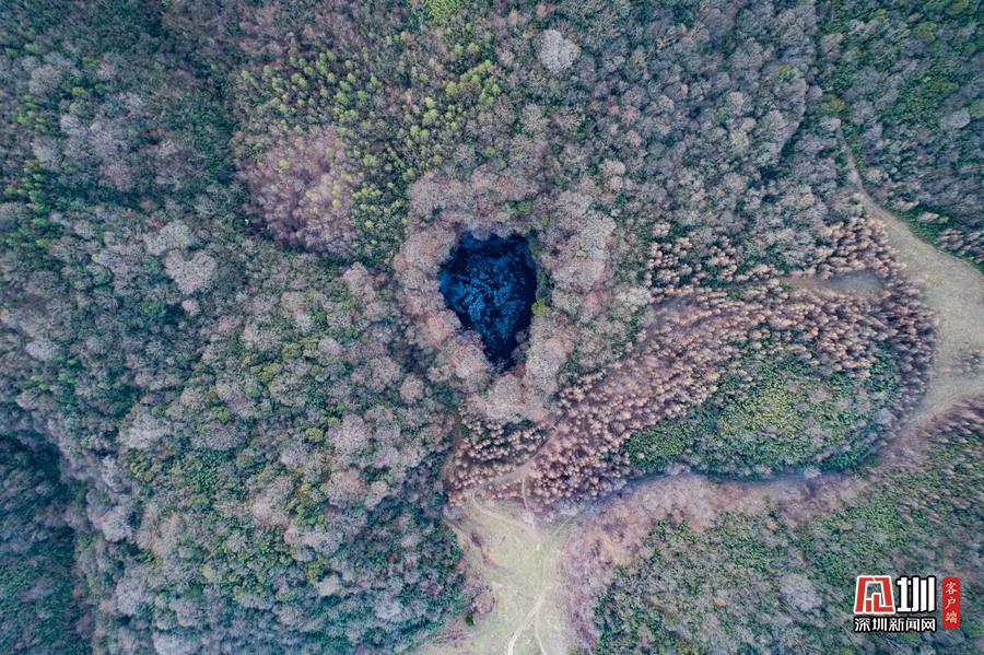 圖為2019年3月11日,陜西漢中鎮(zhèn)巴縣三元鎮(zhèn)天坑,坑口形態(tài)呈近圓形,最大口徑110米,最大坑深150米。