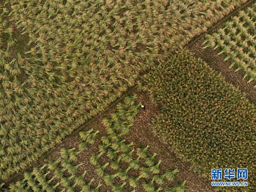 5月13日,在貴州省黔西縣洪水鎮(zhèn)解放村,村民在采收油菜籽(無人機(jī)照片)。新華社記者楊楹攝