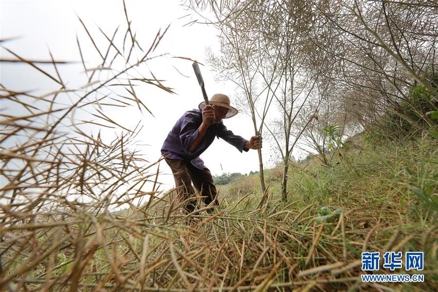 5月13日,在貴州省黔西縣洪水鎮(zhèn)解放村,村民在采收油菜籽。新華社記者楊楹攝