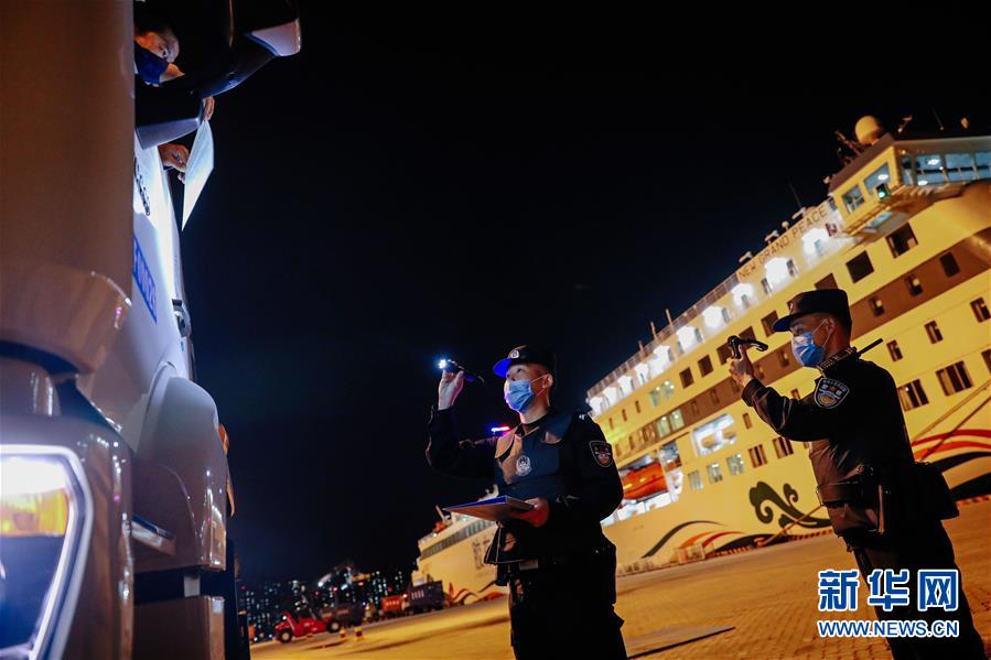 5月13日,山東威海出入境邊防檢查站民警在核對(duì)外籍船員證件。面對(duì)疫情防控要求,山東威海出入境邊防檢查站嚴(yán)密勤務(wù)組織、強(qiáng)化數(shù)據(jù)研判,加強(qiáng)口岸、碼頭的日常巡查,對(duì)國(guó)際船舶和船員強(qiáng)化監(jiān)管,全力打好疫情防輸入攻堅(jiān)戰(zhàn)。據(jù)統(tǒng)計(jì),自2月份以來(lái),威海邊檢站共服務(wù)出入境(港)船舶400余艘次,出入境(港)人員7000多人次,為180多個(gè)集裝箱防疫物資提供通關(guān)便利。新華社記者朱崢攝
