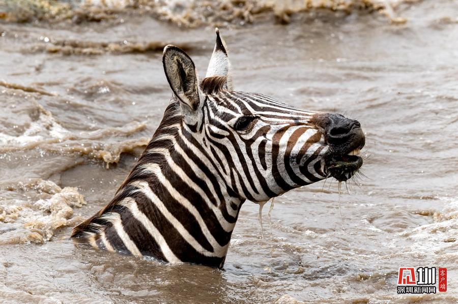 最終,一只勇敢的斑馬帶頭率先跳入河中。
