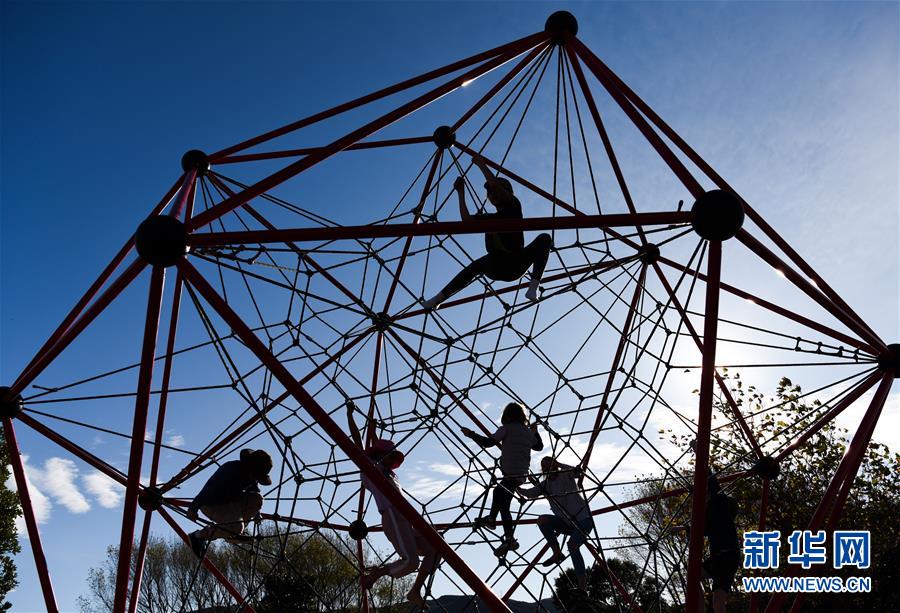 5月14日,孩子們在首都惠靈頓郊外公園的游樂場玩耍。當天是新西蘭從新冠疫情防控響應(yīng)三級下調(diào)到二級的第一天,經(jīng)濟活動全面重啟,公園等公共設(shè)施首次重新開放,中小學生將于5月18日全面返校復(fù)課。新華社記者郭磊攝