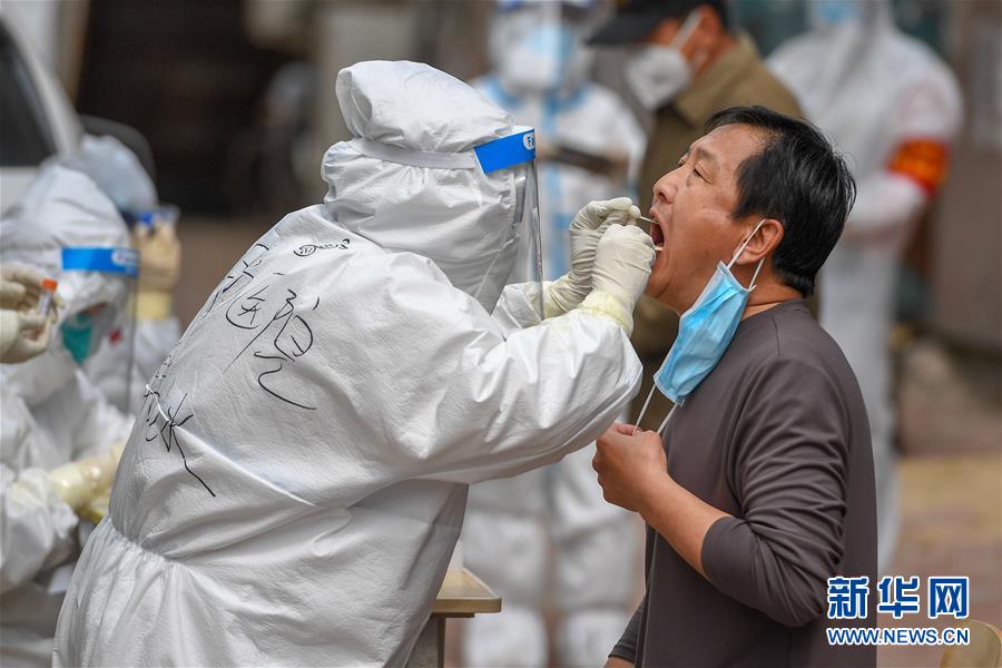 5月15日,在舒蘭市建馨園小區(qū),工作人員為居民采集咽拭子。當(dāng)日,從吉林市7家市直醫(yī)院抽調(diào)的300名護(hù)士經(jīng)培訓(xùn)后,全部投入到舒蘭市(隸屬于吉林市)核酸采樣工作中。為提供追溯傳染源所必需的核酸檢測相關(guān)數(shù)據(jù),舒蘭市根據(jù)確診病例的活動軌跡,將流調(diào)和核酸檢測范圍擴(kuò)大至本地確診病例和無癥狀感染者的次密接人員及一般接觸者。新華社記者張楠攝