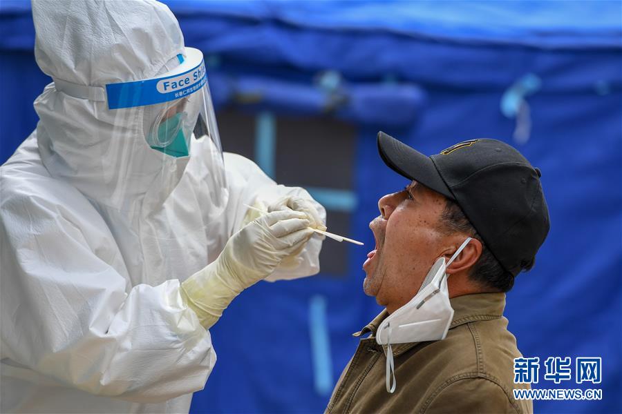 5月15日,在舒蘭市建馨園小區(qū),工作人員為居民采集咽拭子。當(dāng)日,從吉林市7家市直醫(yī)院抽調(diào)的300名護(hù)士經(jīng)培訓(xùn)后,全部投入到舒蘭市(隸屬于吉林市)核酸采樣工作中。為提供追溯傳染源所必需的核酸檢測(cè)相關(guān)數(shù)據(jù),舒蘭市根據(jù)確診病例的活動(dòng)軌跡,將流調(diào)和核酸檢測(cè)范圍擴(kuò)大至本地確診病例和無(wú)癥狀感染者的次密接人員及一般接觸者。新華社記者張楠攝