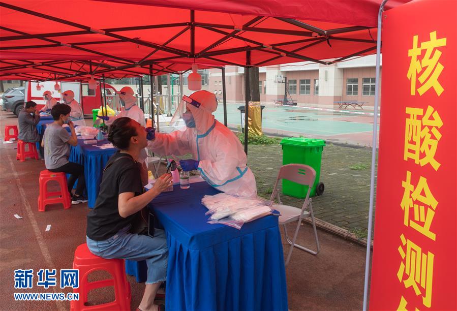 5月15日,在武漢東西湖區(qū)吳家山第一小學(xué)操場檢測點,工作人員對市民進(jìn)行核酸檢測。近日,武漢將對全市市民有序開展核酸檢測,進(jìn)一步摸清無癥狀感染者底數(shù),進(jìn)而有效管控。新華社記者肖藝九攝