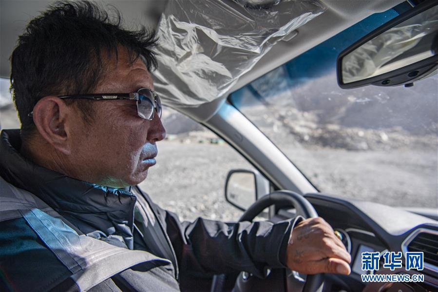 拉巴次仁駕駛巡護(hù)車在珠穆朗瑪峰國家級(jí)自然保護(hù)區(qū)內(nèi)巡邏(5月15日攝)。新華社記者孫非攝