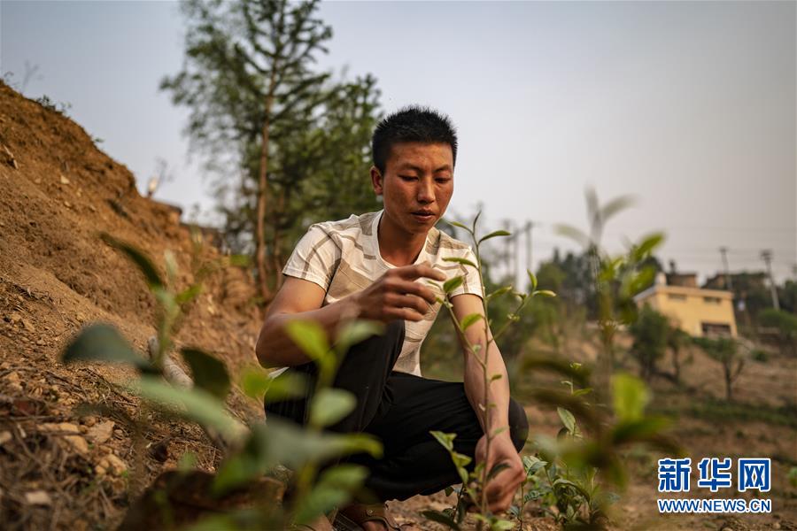 村民王九才在茶葉地里勞動(dòng)(3月28日攝)。新華社記者江文耀攝