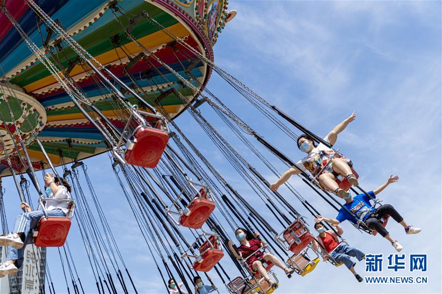 5月19日,游客在武漢歡樂谷內(nèi)游玩。當(dāng)日,湖北武漢歡樂谷重新開放。園區(qū)執(zhí)行客流量管控,游客需通過網(wǎng)上預(yù)約才能進(jìn)入,室內(nèi)場館暫不開放。新華社記者熊琦攝