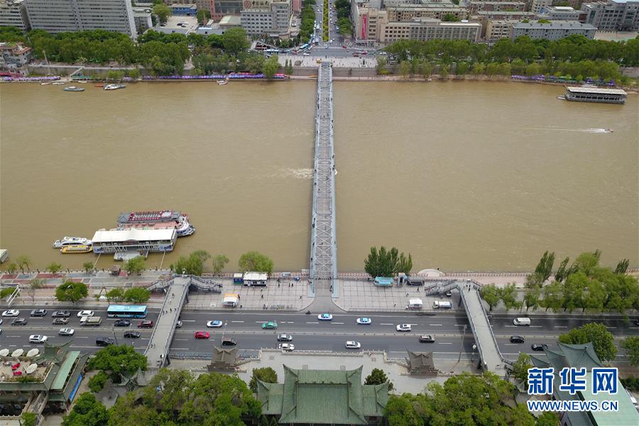 這是5月18日在蘭州市城關(guān)區(qū)拍攝的蘭州黃河鐵橋——中山橋及周邊初夏景象(無人機照片)。新華社記者范培珅攝