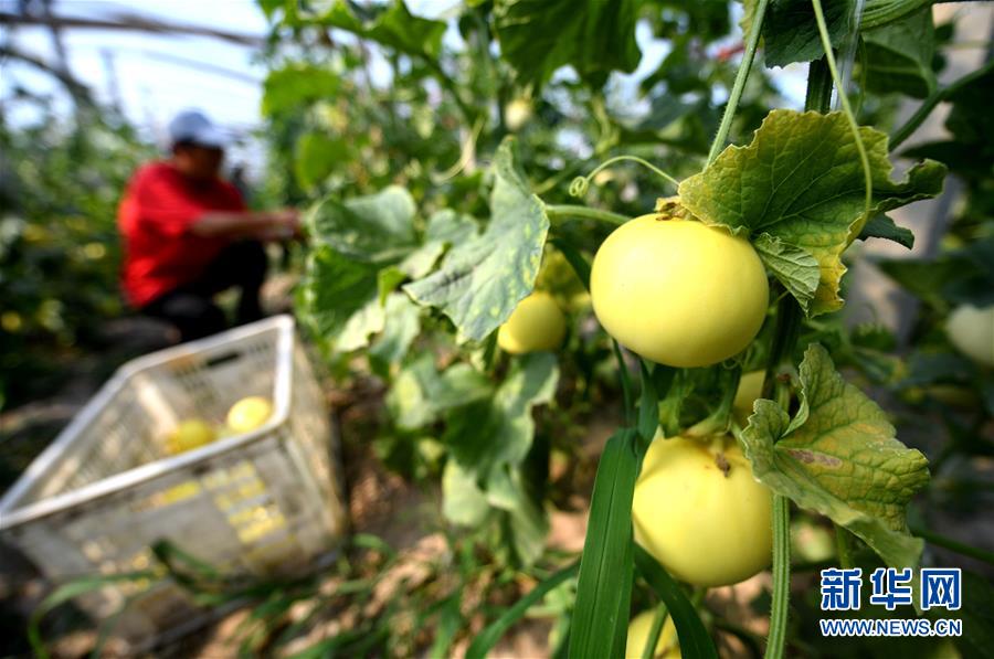 5月20日,新河縣尋寨鎮(zhèn)桃園村村民在采摘甜瓜。近年來,河北省新河縣尋寨鎮(zhèn)在推進農(nóng)業(yè)供給側(cè)結(jié)構(gòu)性改革中,把甜瓜種植作為扶貧產(chǎn)業(yè)項目。村集體把部分閑置的土地流轉(zhuǎn)給本村有就業(yè)能力的貧困戶,并引導(dǎo)他們規(guī)?;N植甜瓜,帶動群眾脫貧增收。新華社記者王曉攝