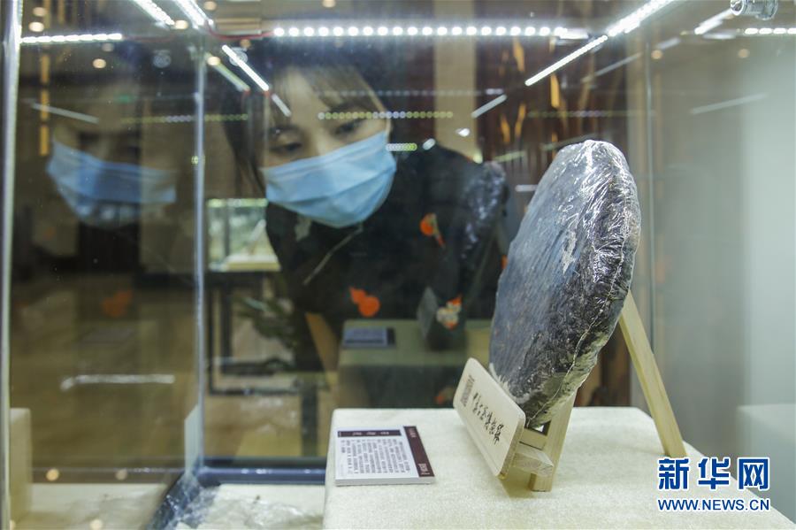 5月21日,在位于北京通惠河畔的中華古茶博物館,一名觀眾在首場展覽活動(dòng)——“大道遺真:館藏普洱茶專題展”上觀看一餅“號(hào)級(jí)茶”。 當(dāng)日,以“茶和世界 共品共享——茶,讓我們在一起”為主題的首個(gè)“國際茶日”萬里茶道系列活動(dòng)在北京中華古茶博物館開啟。 新華社記者 張玉薇 攝