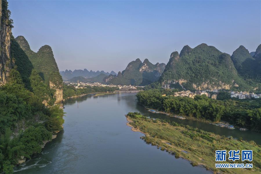 這是在廣西桂林市陽朔縣興坪鎮(zhèn)拍攝的山水風(fēng)光(5月19日攝,無人機(jī)照片)。“蒼蒼森八桂,茲地在湘南。江作青羅帶,山如碧玉篸……”一千多年前,唐朝詩人韓愈寫盡桂林山水之美。初夏時節(jié),在廣西桂林市陽朔縣興坪鎮(zhèn),藍(lán)天白云下,煙雨朦朧中,桂林山水盡顯秀美。新華社記者 曹祎銘 攝