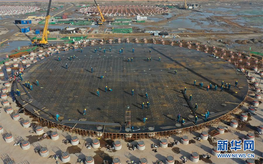 5月23日,工人在唐山市曹妃甸區(qū)LNG項(xiàng)目第一階段工程儲(chǔ)罐建設(shè)工地施工(無(wú)人機(jī)照片)。新華社記者楊世堯攝