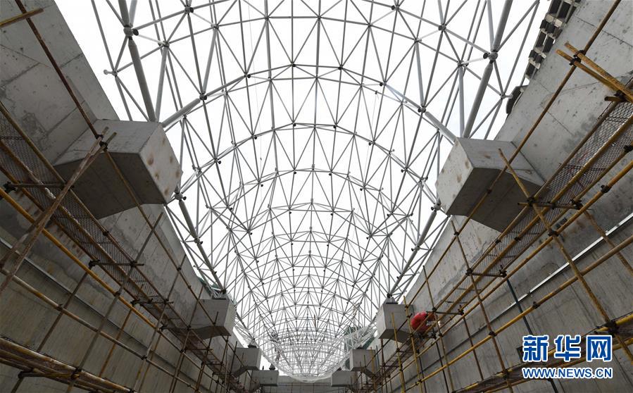 5月23日,工人在??谖拿鳀|越江通道項(xiàng)目江西段主線出入口施工。近日,記者從海口文明東越江通道項(xiàng)目部了解到,目前,項(xiàng)目工程量已完成85%,預(yù)計(jì)下半年竣工通車。據(jù)了解,??谖拿鳀|越江通道是連接??谥鞒菂^(qū)和江東新區(qū)的重要紐帶,2018年底開工,全長(zhǎng)4.38千米,其中隧道段2.72千米。新華社記者楊冠宇攝